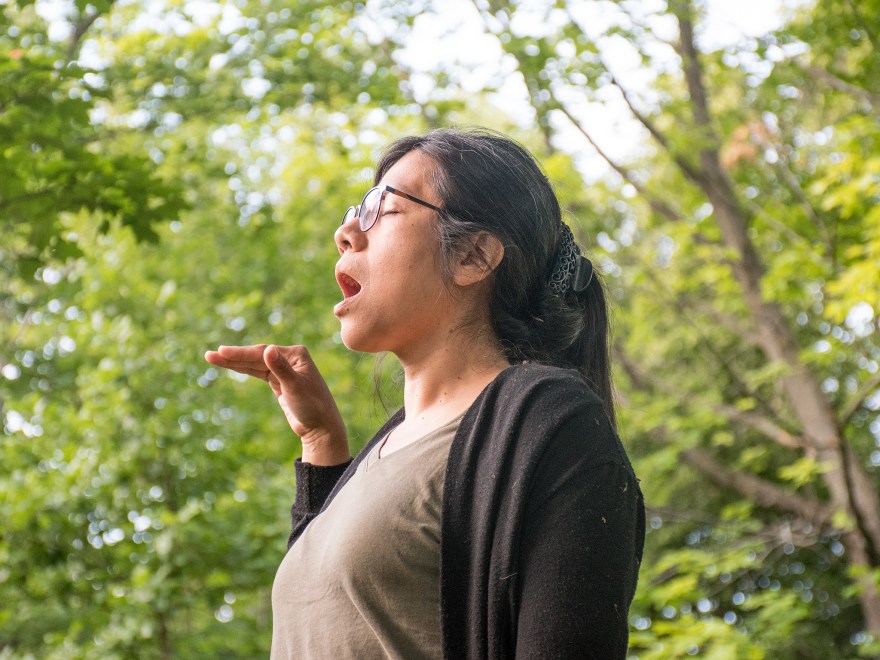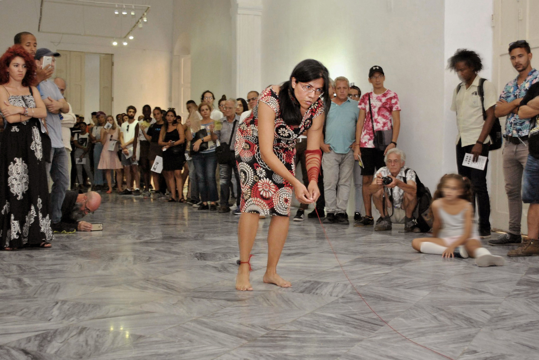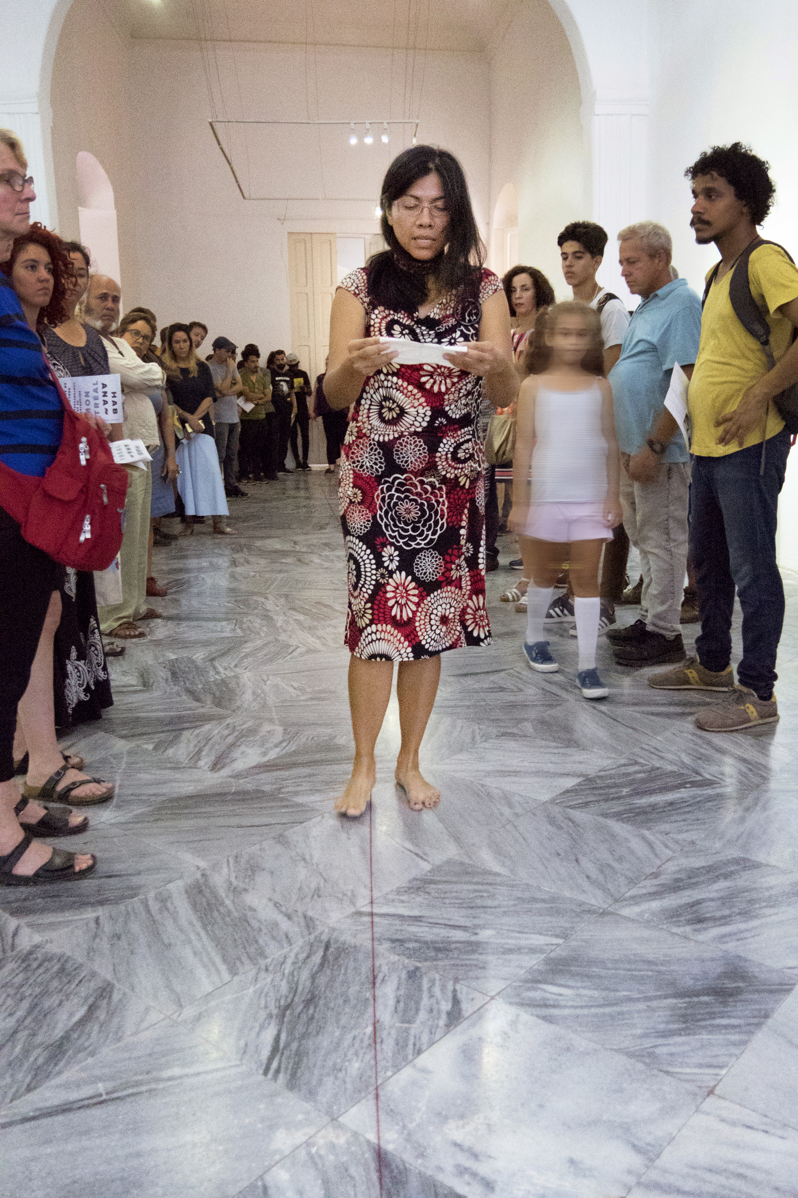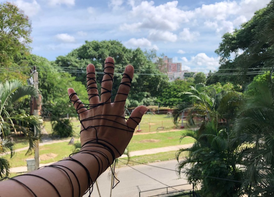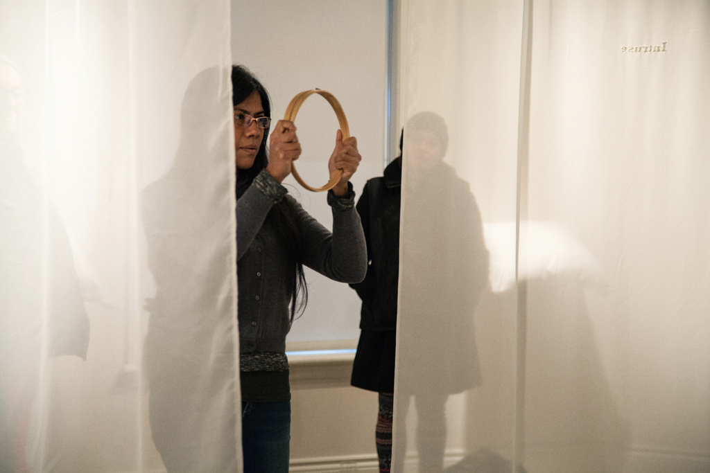 Pendant trois semaines, en mai et juin 2022, Estela López Solís a réalisé une résidence de recherche et création à AdMare, Centre d’artistes en art actuel des Îles-de-la-Madeleine. Lors de cette résidence, l’artiste a développé un rapport au territoire à l’échelle de la marche, de manière à tisser des liens avec des gens qu’elle a rencontrés sur son chemin. Elle invita ces personnes à des rencontres en groupe ou à des parcours avec elle en tête-à-tête, afin d’explorer ensemble le territoire madelinot ainsi que les récits historiques, familiaux et personnels qui imprègnent ces îles. Lors de ces moments de partage se sont dévoilés, par la parole et le récit, des rapprochements et des divergences dans ces expériences d’insularité. Une position d’écoute active envers les gens et d’attention sensible aux qualités des lieux a guidé ces recherches. Nourrie par ces dialogues et munie de matériaux régulièrement employés dans son travail (fils, tissus, papiers, etc.), l’artiste ponctua ces marches, ainsi que d’autres parcours effectués en solitaire, par la réalisation in situ d’actions performatives allant du geste furtif à l’action participative. De ce processus relationnel découlent aussi Journal de bord à ciel ouvert, une intervention graphique/textuelle évolutive dans l’espace public et l’exposition Insularités : au fil des voix, au fil de l’eau, une installation in situ au cœur de l’aéroport des Îles, dans l’espace Colis suspect du centre AdMare.