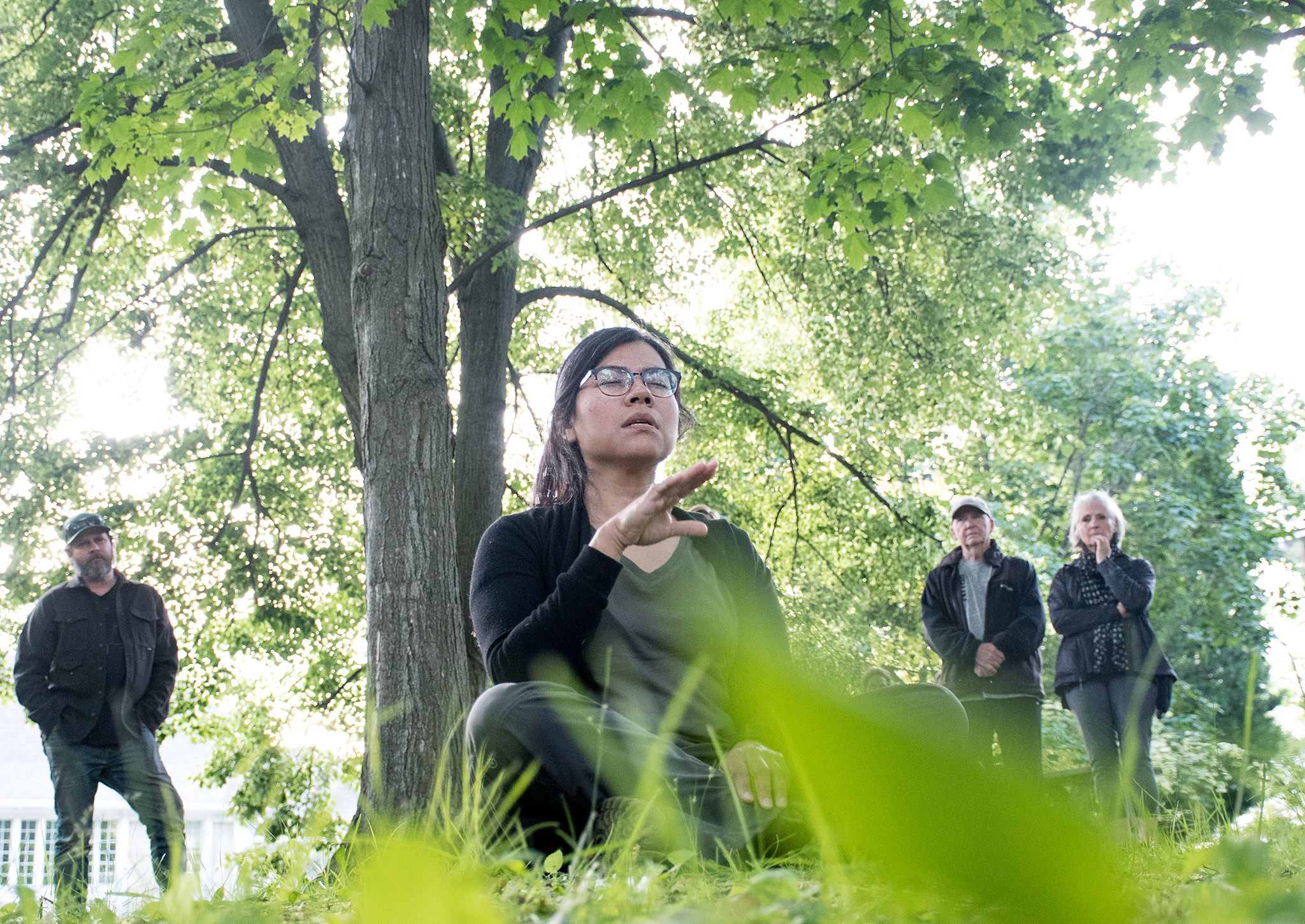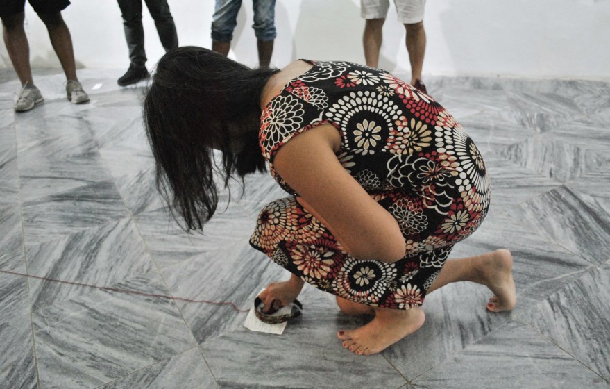 Au cours de sa résidence, Estela López Solís a aussi réalisé de marches en solitaire lors desquelles elle se tenait « à l’écoute des lieux », portant une attention sensible à leurs qualités. Nourrie par l’ensemble de rencontres, par les récits entendus et par des questionnements sur son propre rapport à ce territoire et à ceux qui l’habitent, elle réalisait des brèves actions performatives spontanées ou furtives, posant des gestes qui répondaient à ce qu’elle observait. Elle entamait ainsi un « dialogue » avec les lieux.