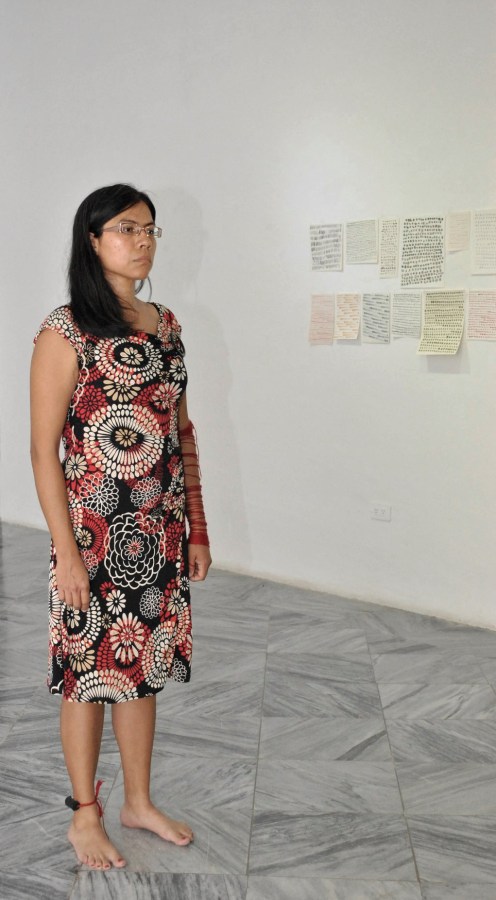En este performance, la artista profiere en jerga mexicana, una injuria cargada de desprecio clasista y racista. Con esa frase devalúa la Cumbia, un género musical tocado, cantado y bailado en Latinoamérica. Enseguida, inicia una serie de acciones que buscan ir en contra de dicha injuria, develando las raíces de la Cumbia en la cultura de los esclavos negros, durante la época de la Colonia. Así, esta obra nos recuerda los vínculos que existen entre prácticas contemporáneas de discriminación y prácticas de explotación humana que han dejado heridas – aún abiertas – en nuestras sociedades.